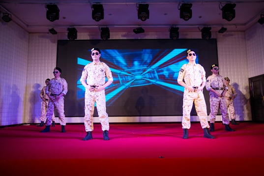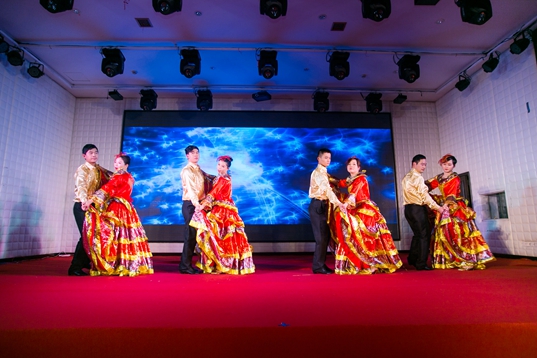 会议结束后,迎来了2017年迎新晚会,周总在祝酒词中以腊梅作比,梅花虽娇小玲珑,却在寒冬腊月尽情绽放,梅花的这种气节,这种迎接希望的乐观性格正和我们的企业,我们企业员工的精神面貌高度契合。晚会节目丰富多彩,形式多样,有歌曲串烧、炫舞、小品、电声乐队弹唱、时装走秀等,全部节目均员工自编自演,整场晚会高潮迭起,笑声不断,在这样欢乐氛围中,大家深深地感受到了华亿(中国)大家庭的温暖。