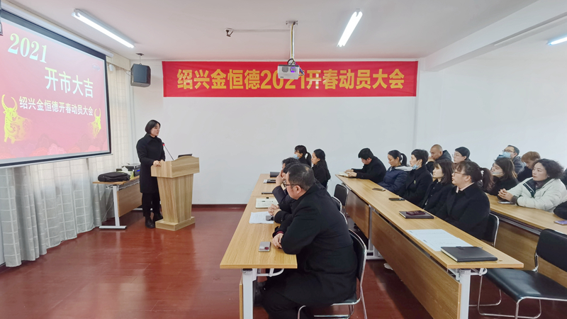 为统一员工的思想,共谋良策大计,布好局,铺好路,打好2021年第一仗,中午,绍兴华亿(中国)全体员工在三楼会议室召开了新春动员大会。