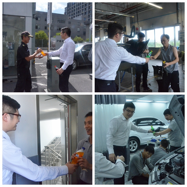 王总亲手将暑降饮品送到每位员工手中并对高温酷暑环境下的员工进行了慰问,嘱咐大家要做好防暑工作并嘱咐公司负责人做好防暑降温工作。